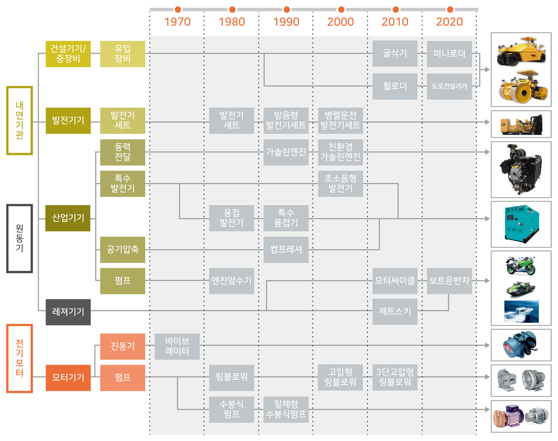 대전기계공업(주)는 지난 50년간 원동기를 기반으로 내연기관과 전기모터로부터 응용된 건설, 산업, 레저기기 및 이와 괄련된 서비스를 전 영역에 걸쳐서 제공하고 있습니다.